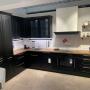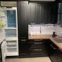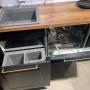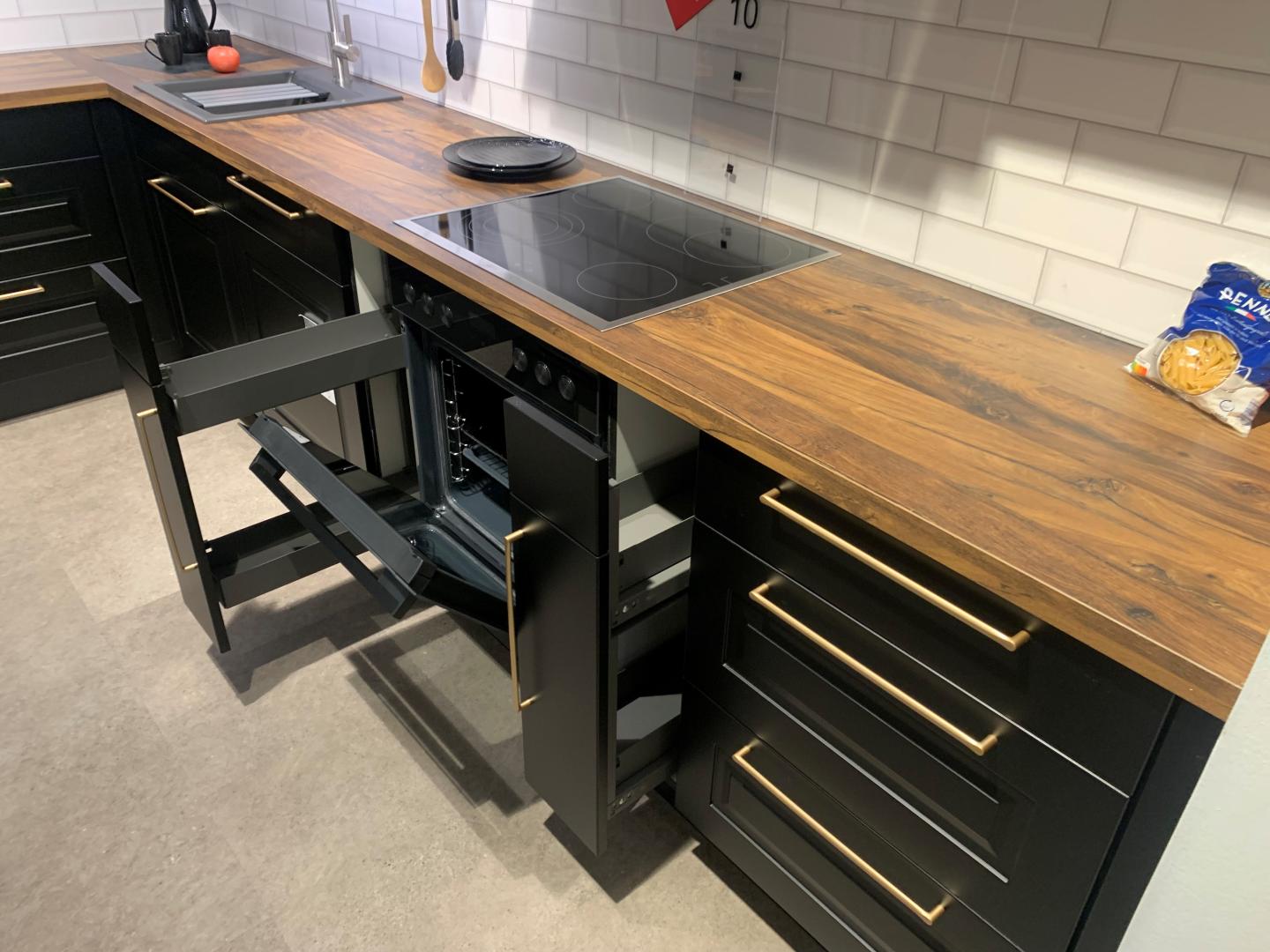 Ein Meisterwerk der Kontraste: Die Arbeitsplatte Balkeneiche trifft auf A77064 Schwarz matt!