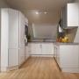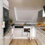 schöne Aufteilung ist diese Küche ebenfalls für eine Dachschräge geeignet. Der Backofen und die Mikrowelle sind hochgesetzt.